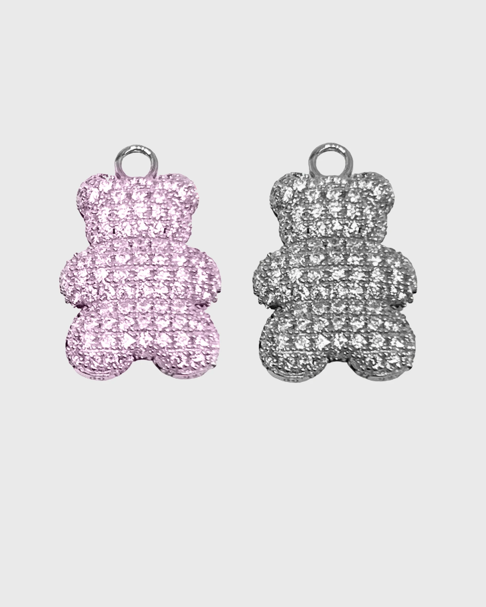 Dije Oso Bicolor Rosa/Blanco Plateado